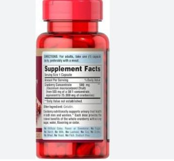 Promote urinary tract health effectively with Puritan's Pride Cranberry! This well-known tonic is recommended as an effective way to maintain a healthy urinary tract. For many, the sharp flavor of cranberry juice is too much for consumption. To solve that problem, we packed a powerful 25,000mg cranberry juice concentrate into convenient, easy-to-swallow capsules