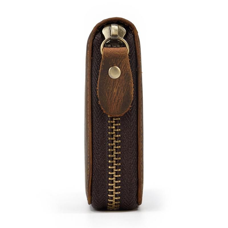 1X Crazy horse-monedero pequeno de cuero genuino para hombre y mujer monedero pequeno con cierre de cremallera