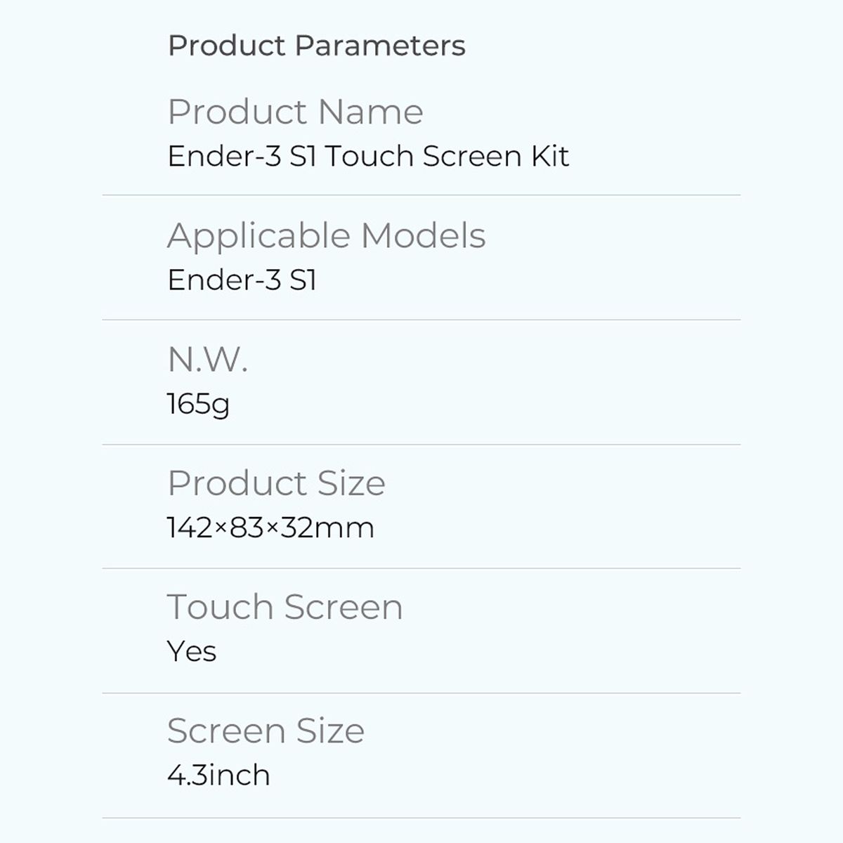 Packing List:1 xEnder-3 S1 Touchscreen Kit