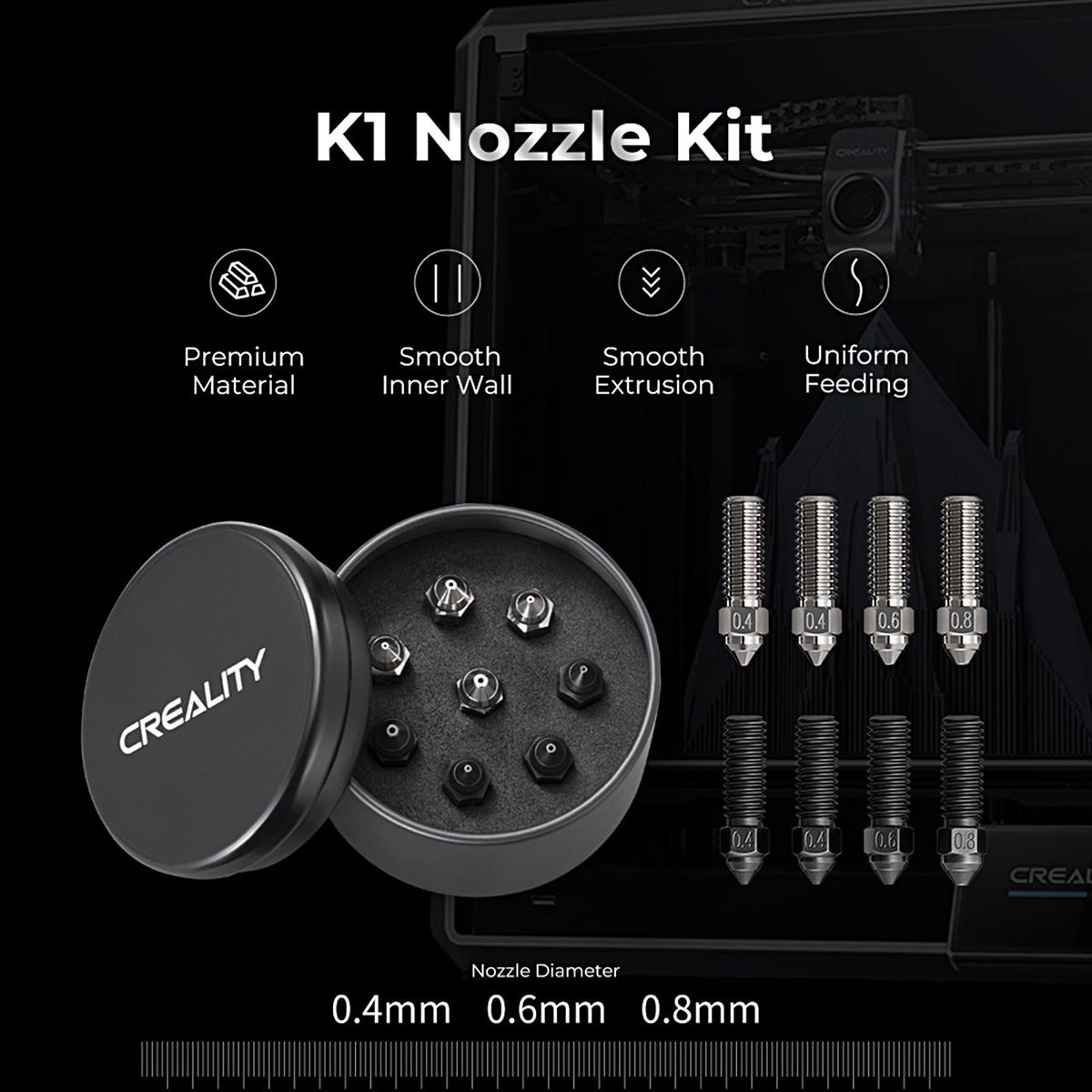 Buy CREALITY New Copper Alloy and Hardened Steel Nozzle K1 Nozzle Kit Supporting High-speed Printing Speed of 600mm/s for K1 / K1 Max / CR-M4 3D Printer Parts Suitable for most of Filaments PLA / ABS / PETG / TPE / TPU / PC / PEEK / PEKK / PEI in Nigeria
