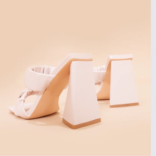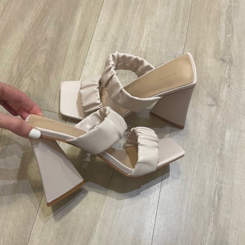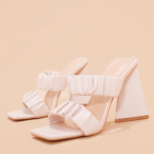 Buy Cream Square Toe Ruched Strap Triangle High Heel in Nigeria