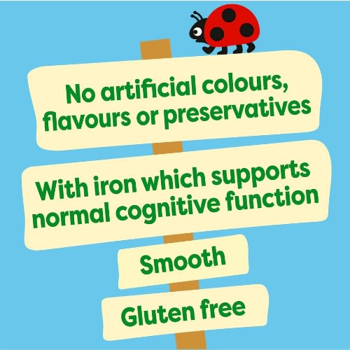 IngredientsCereals 50% (Wheat flour, Hydrolysed wheat flour), Skimmed milk powder 23%, Dried fruits 14% (Banana 7%, Orange 3%, Pineapple 2%, Apple 1.1%, Pear 0.8%, Corn starch, Maltodextrin, Emulsifier: Sunflower lecithin), Vegetable oils (Rapeseed, Sunflower), Full fat milk powder 5.2%, Minerals (Calcium carbonate, Ferrous fumarate, Zinc sulphate, Potassium iodide), Vitamins (C, Niacin, E, Thiamin (B1), Pantothenic acid, A, B6, K, Folic acid, Biotin, D), Flavouring (Vanillin), Antioxidants (Tocopherol-rich extract, Ascorbyl palmitate), Culture (Bifidobacterium lactis).