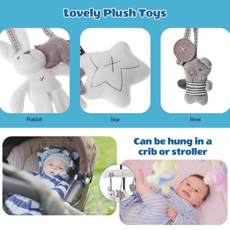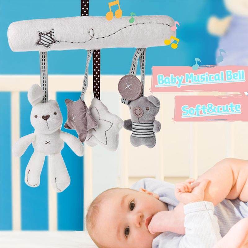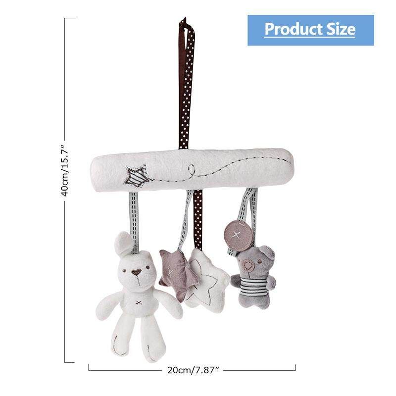 Creative Cute Animal Baby Musical Bell Trailer Pendant Bed Hanging Rattle for Stroller Crib Seat Features: 1. Cute animals hanging rattle will be the baby of playmate. 2. Come with rope hanging, you can hang it in a crib or stroller. 3. Dolls of shaking animals will make your baby feel interesting and attract your baby's attention. 4. The sweet music will promote the hearing ability of the baby, and can help the baby fall asleep. 5. Stuffed toys, simple and compact, easy to clean. 6. Built-in button to play music. Specifications: Material: Plush Product size (L x W x H): 40x20x3cm/15.75x7.87x1.18in Package Included: 1 x Toy Plush Pendant