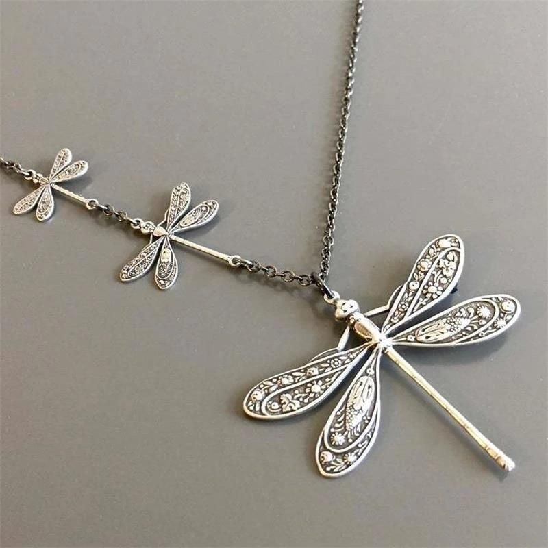 Buy Creative Design Pattern Dragonfly Pendant Necklace Simple Individuality Retro Style Asymmetrical Design Necklace Lady Jewelry in Nigeria