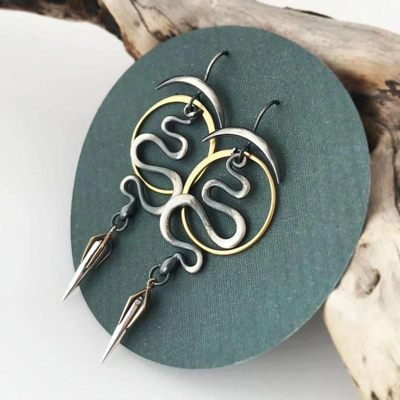 Buy Creative Snake Irregular Geometric Spiral Earrings for Women Vintage Female Awl Small Pendant Earrings oorbellen in Nigeria