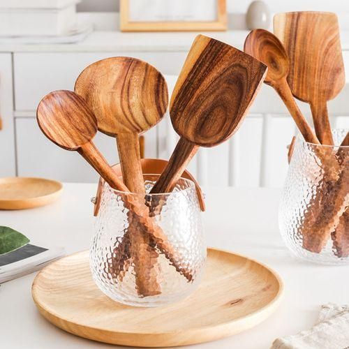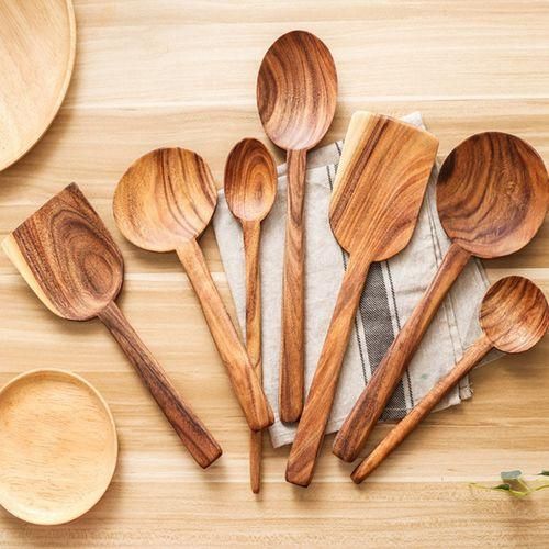 An Perfect Wooden Kitchen Utensil Set that features all the essential cooking tools including Wok Turner, Flat Spatula, Soup Ladle, Serving Spoons & Pasta Server.Covers all your kitchen needs from stiring to cooking, and with hanging holes for wall storage easily.