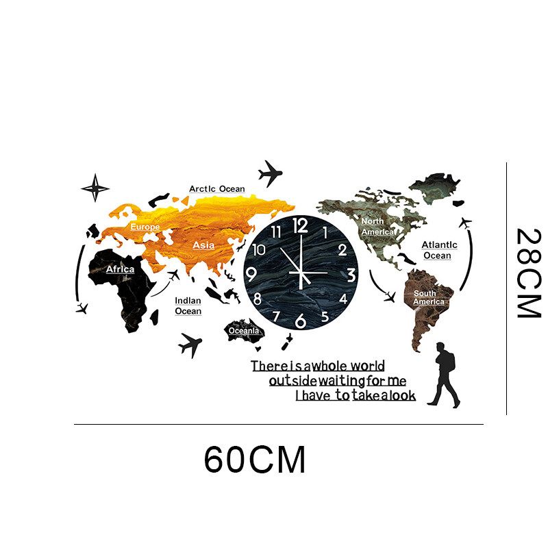 Creative World Map Wall Clock Acrylic Home Fashion Nordic Clocks Bedroom Living Room Light Wall Decoration