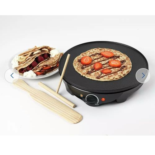 Perfect for creating authentic sweet or savoury crepes in minutes, this crepe maker is a great addition to any home. Easy to use, simply create the batter and using the included batter spreading tool make the ideal shape and size you desire. Using the adjustable temperature dial, control the heat and achieve the perfect colour of crepe. Featuring a non-stick coated plate, once finished simply wipe down the maker without the worry of any batter sticking to the plate and switch off using the adjustable temperature dial.