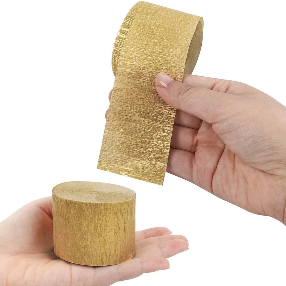EASY TO USE: The crepe paper is easy to use as decorations and versatile. You could simply hang gold streamers from the ceiling to create colorful streamer effect, twist paper streamers together into spirals or use the crepe paper roll for backdrop, easy to use and enrich your party with colors covering the whole environment
