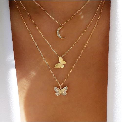 Buy Crescent And Butterfly Layered Necklace- Gold in Nigeria