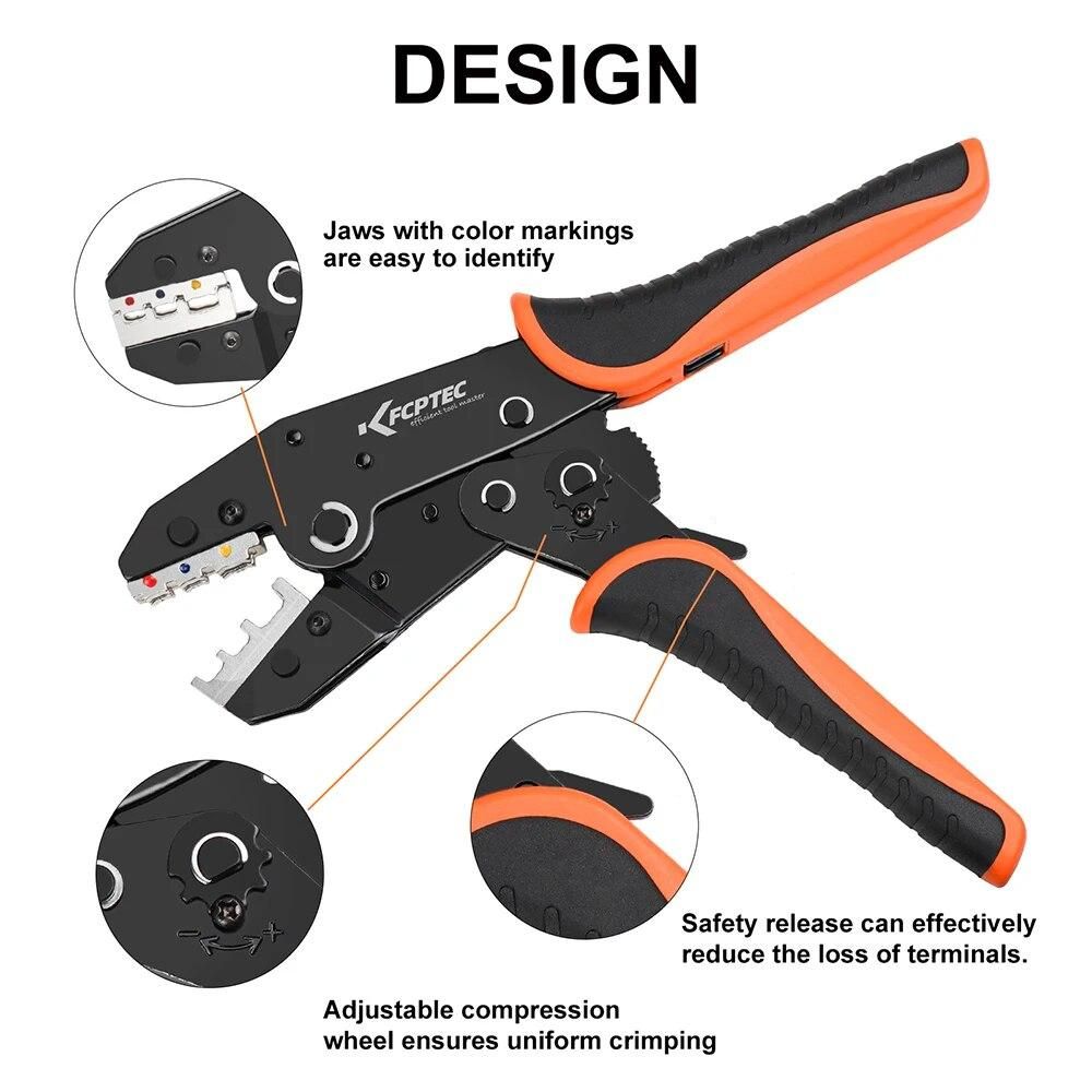 Easy Crimping - Equipped with a ratchet mechanism and safety release for streamlined performance and an adjustable crimper height for optimal results. The non-slip nylon handle, designed for comfort and efficiency, reduces hand fatigue by up to 50% compared to traditional crimping tools.