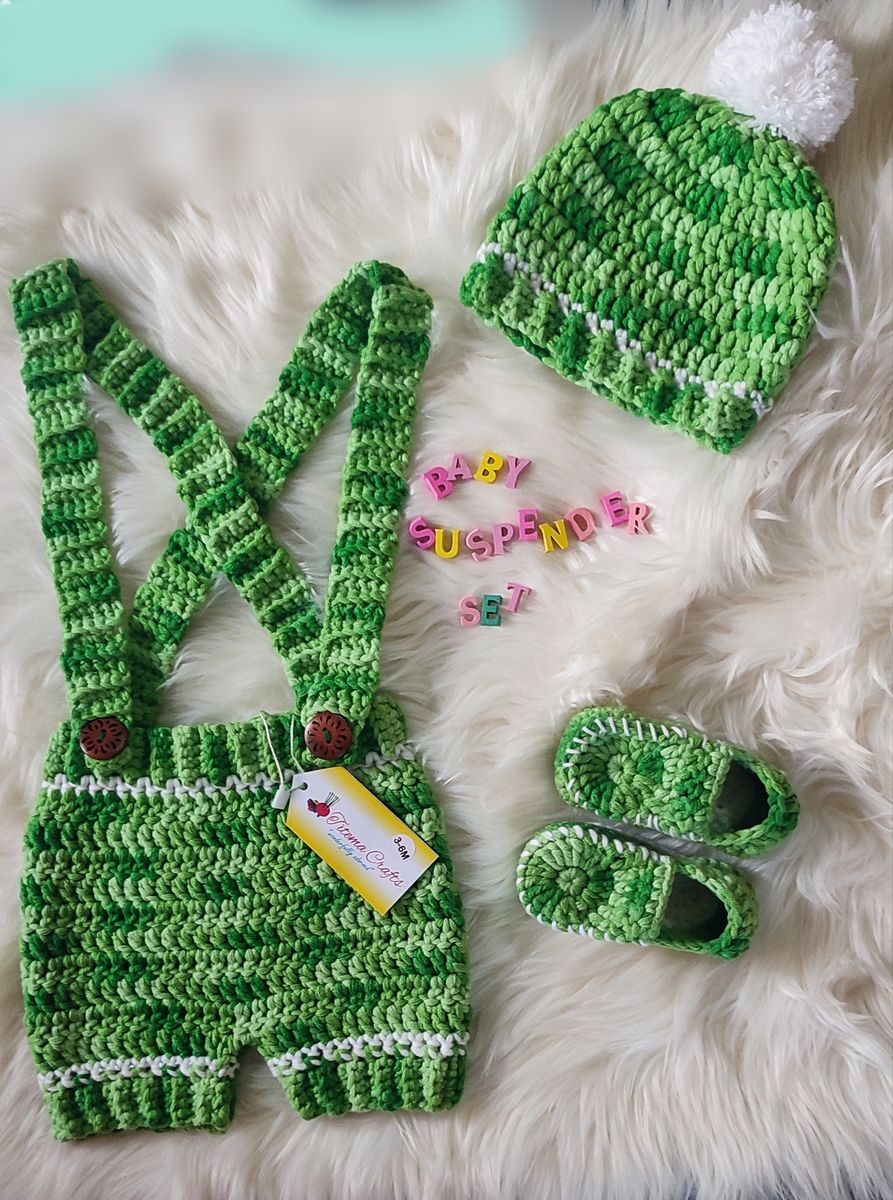 Our baby crochet suspender set is suitable for your cute baby's outings and as a prop those unique baby milestone photos.