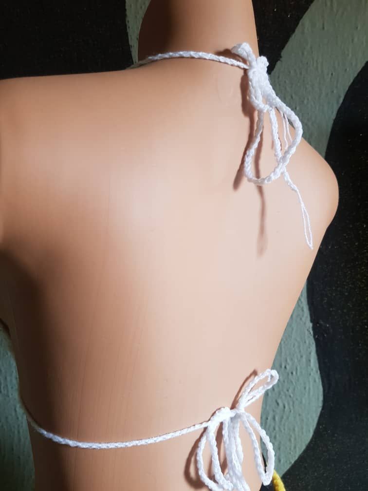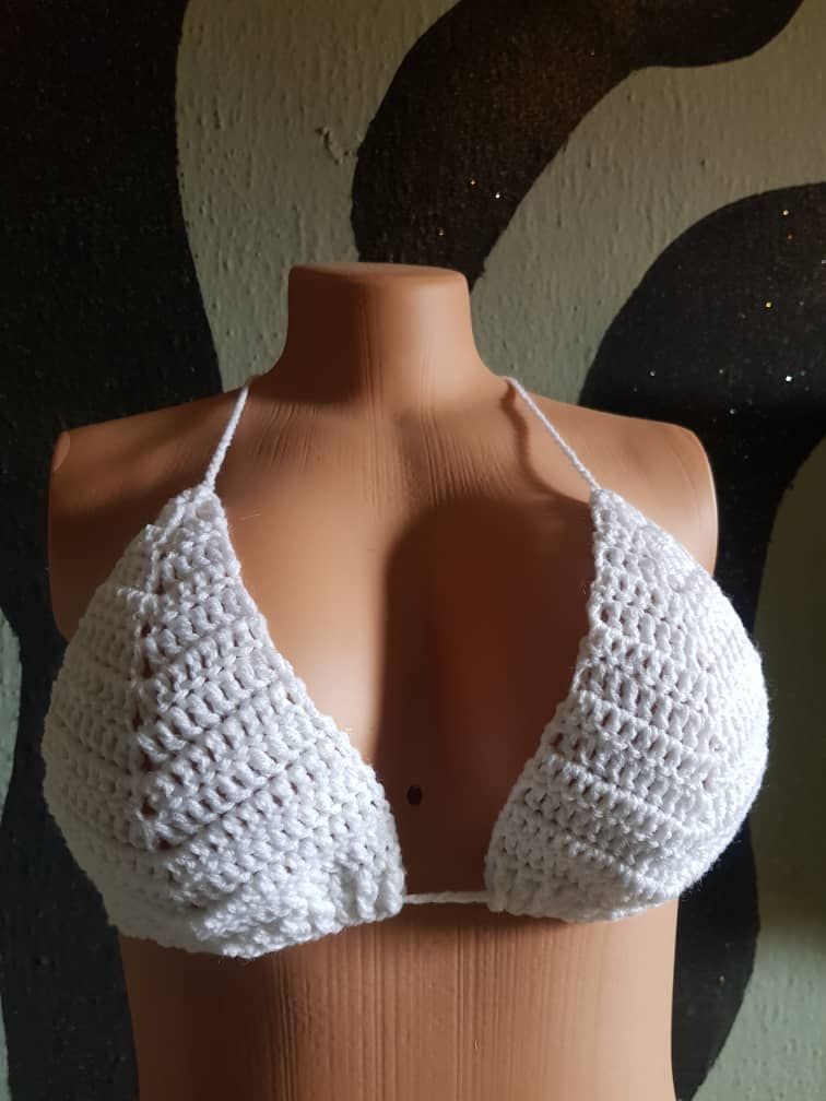This bikini is the queen of mix and match.A handmade crochet push up bikini top features self tie halter straps and secured back strings that undoubtedly add an extra dose of feminine detail. Easily for a smooth and comfortable fit.