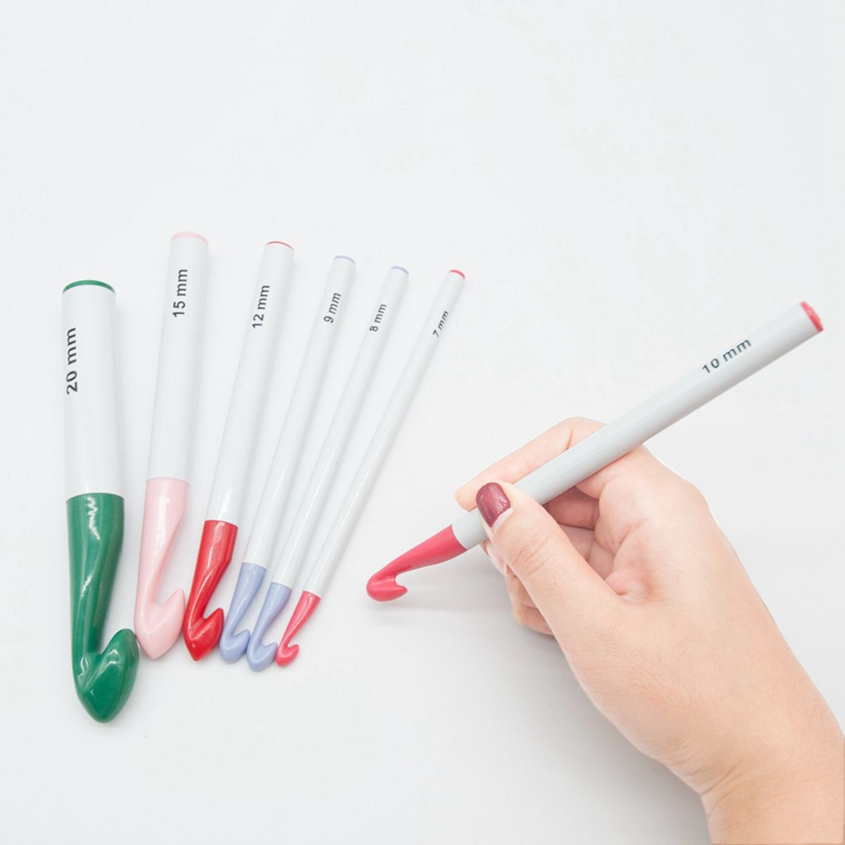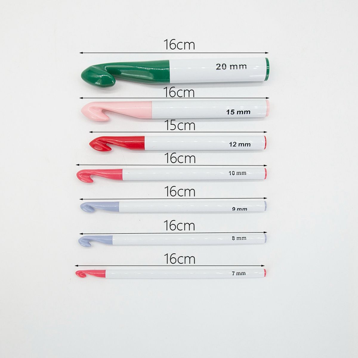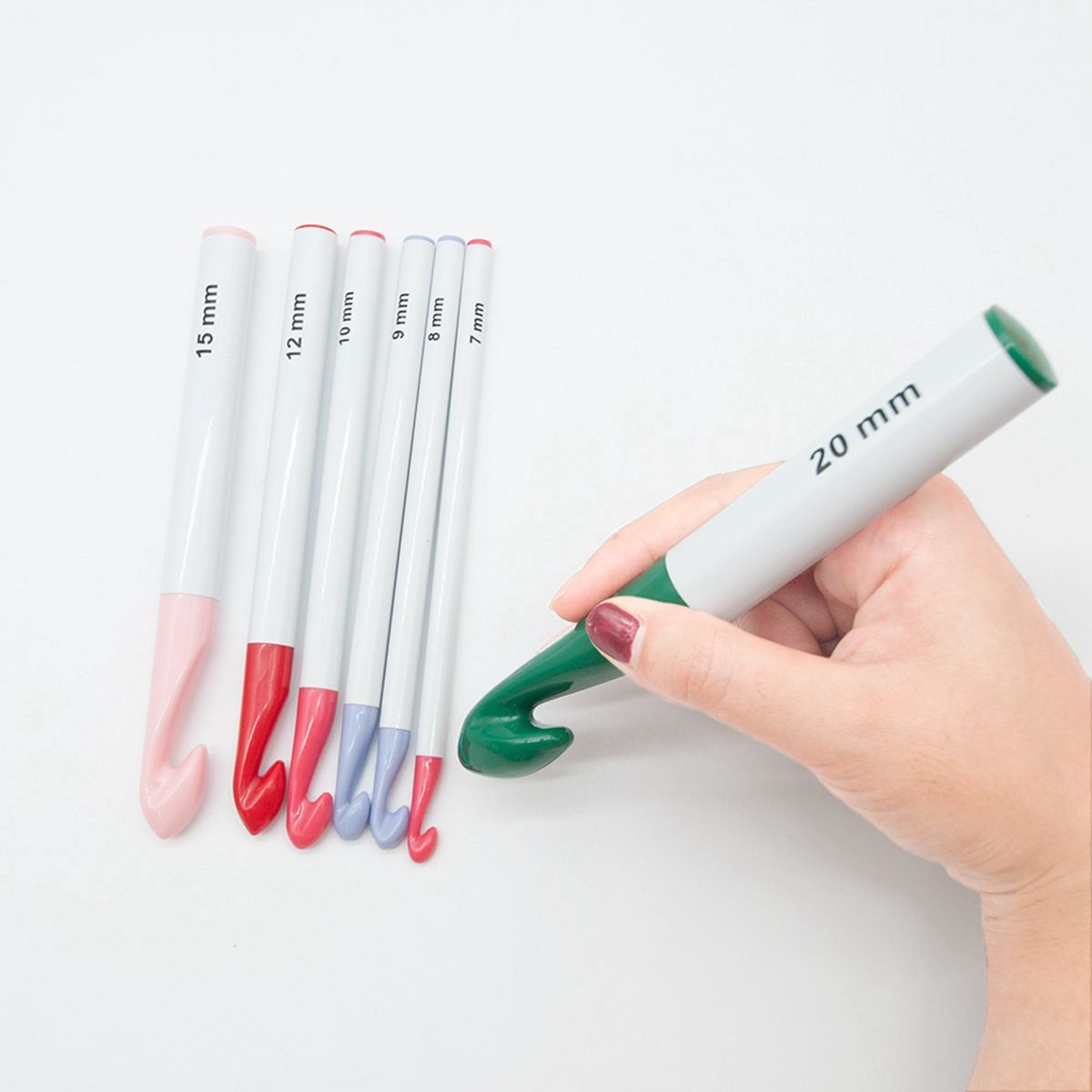 Large Crochet Hooks Set: 7 pcs Different Size Crochet Hooks diameter size (approx.7/8/9/10/12/15/20mm), can meet your different demands in crocheting.