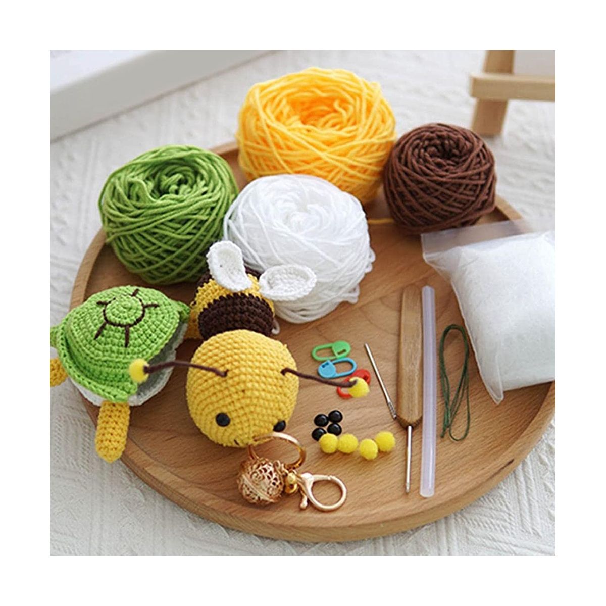 DIY complete primary crochet kit - includes 1 crochet hook, 1 filler, 1 sand thread, 1 , 4 knitting marks, 4 eyes, 4 antennae, 1 hot glue stick, 1 key chain