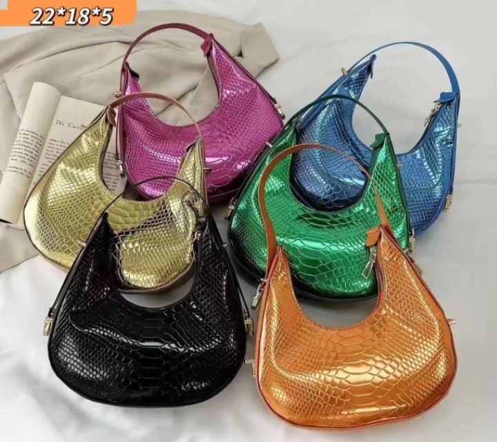 Buy Crocodile Glossy Skin Design Handbag- Gold in Nigeria