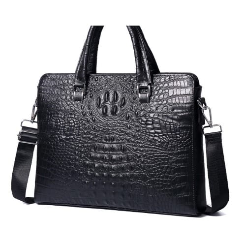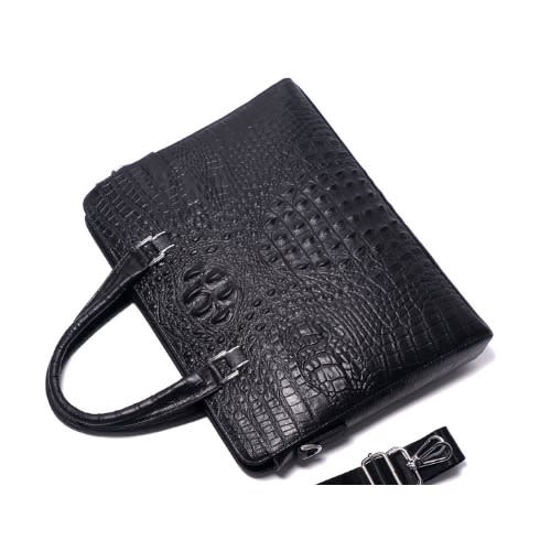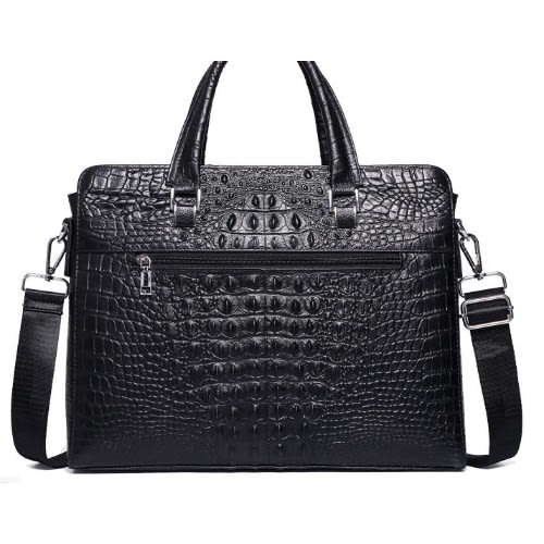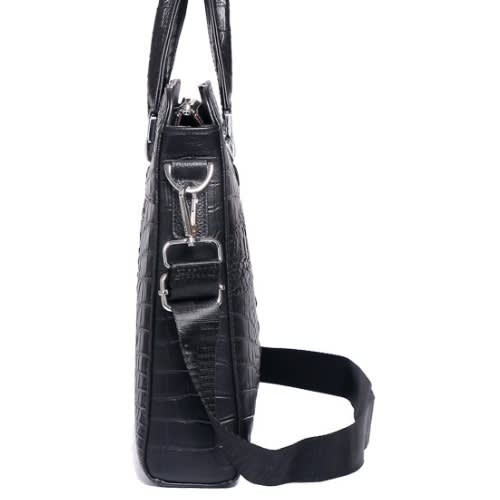 Men Crocodile Pattern Leather Briefcase + Wallet-Black