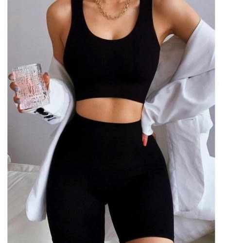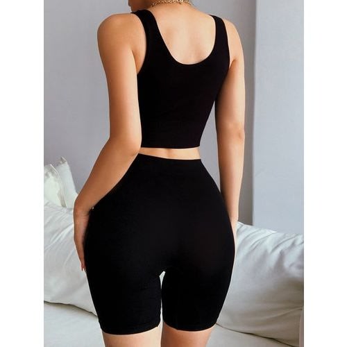 Buy Crop Top And Biker Short Set - Black - 2 Pcs in Nigeria