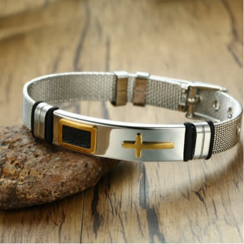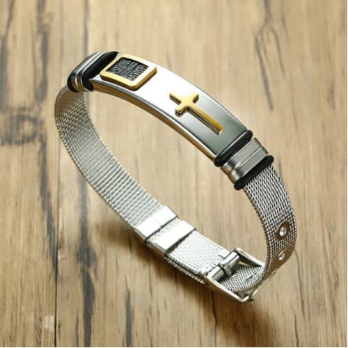 Buy Cross Adjustable Men's Bracelet - Titanium Steel - Silver & Gold in Nigeria
