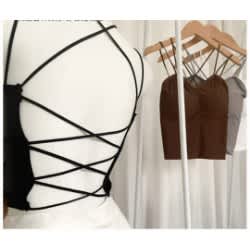 It's a party in the back! Made in a high-stretch fabric, this cropped top features a fun crossed-back design. Light and comfortable fit. Comes with removable padding and features an elastic cross back detail. Recommended to size down if you are in between size.