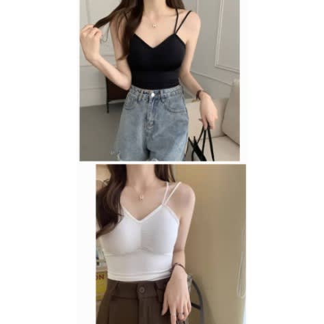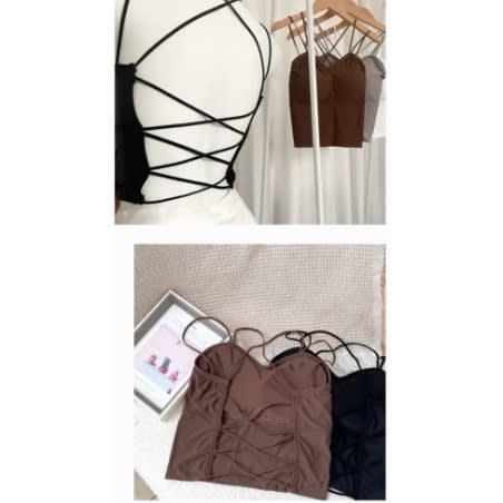 It's a party in the back! Made in a high-stretch fabric, this cropped top features a fun crossed-back design. Light and comfortable fit. Comes with removable padding and features an elastic cross back detail. Recommended to size down if you are in between size.