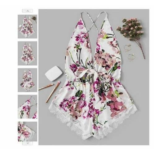 Buy Cross Backless Floral Romper in Nigeria