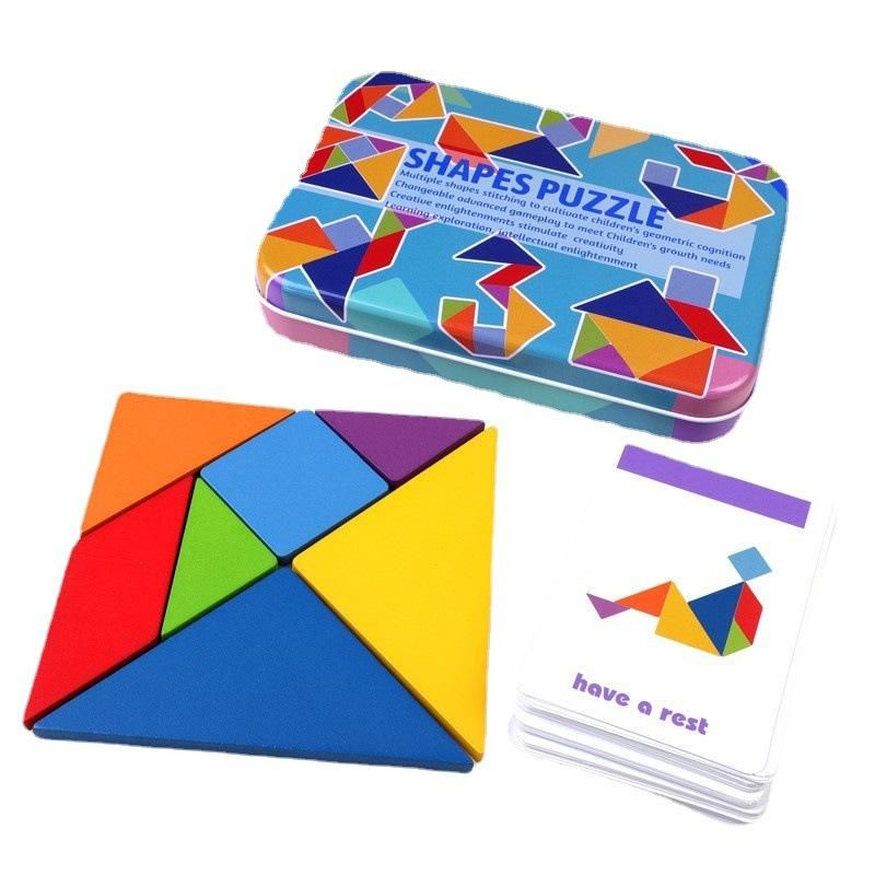 Buy Cross-border CPC CE Creative Tangram Iron Box Multifunctional Children's Wooden Toys Intellectual Puzzle Egg Shaped Ninegrams in Nigeria