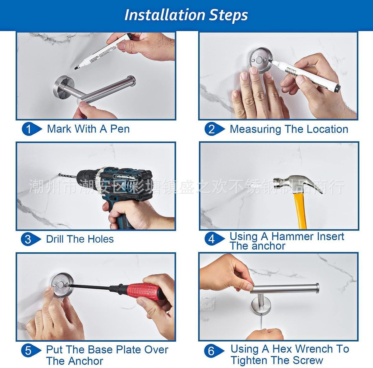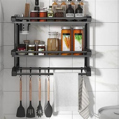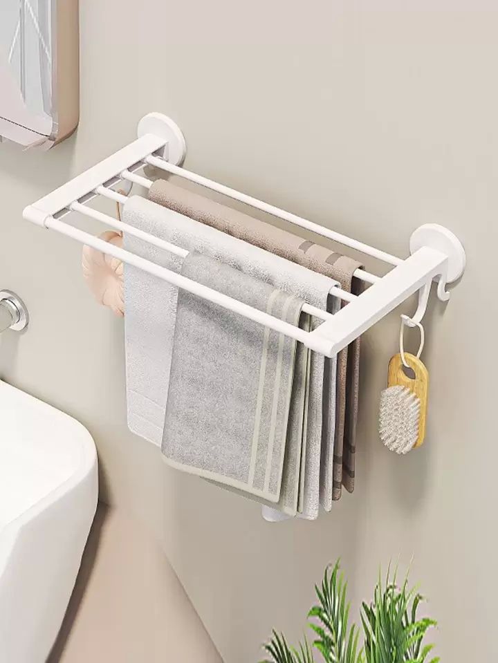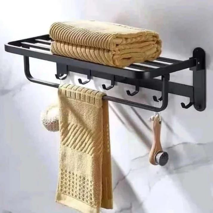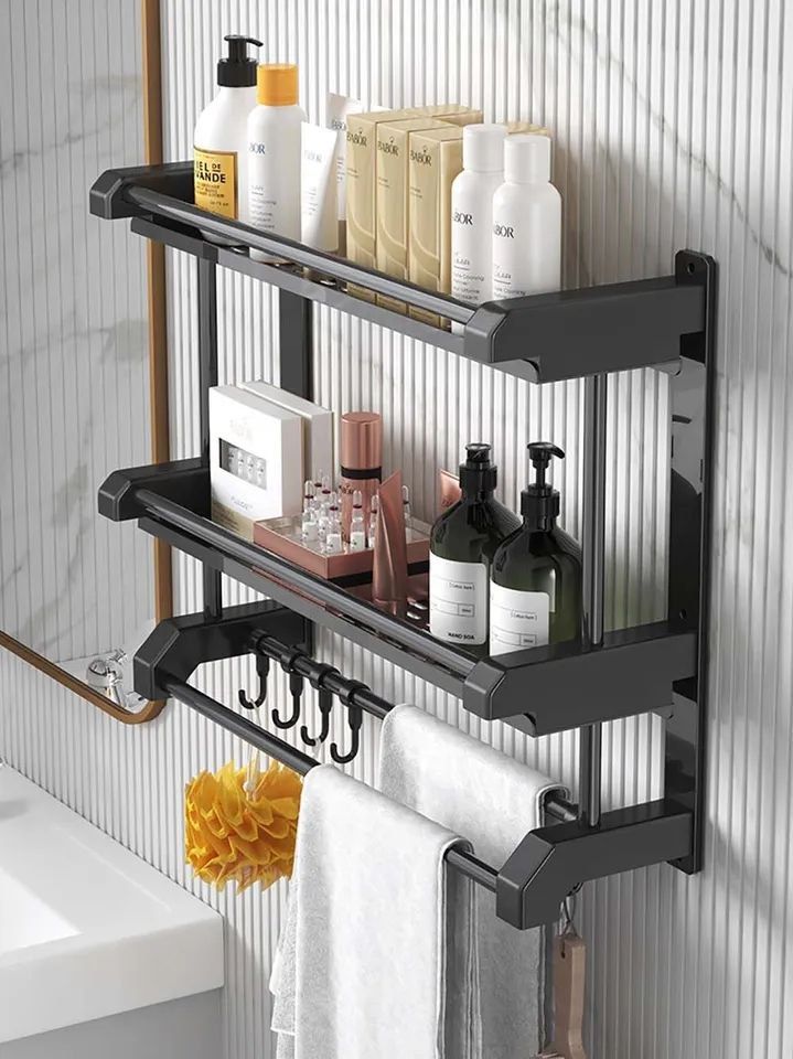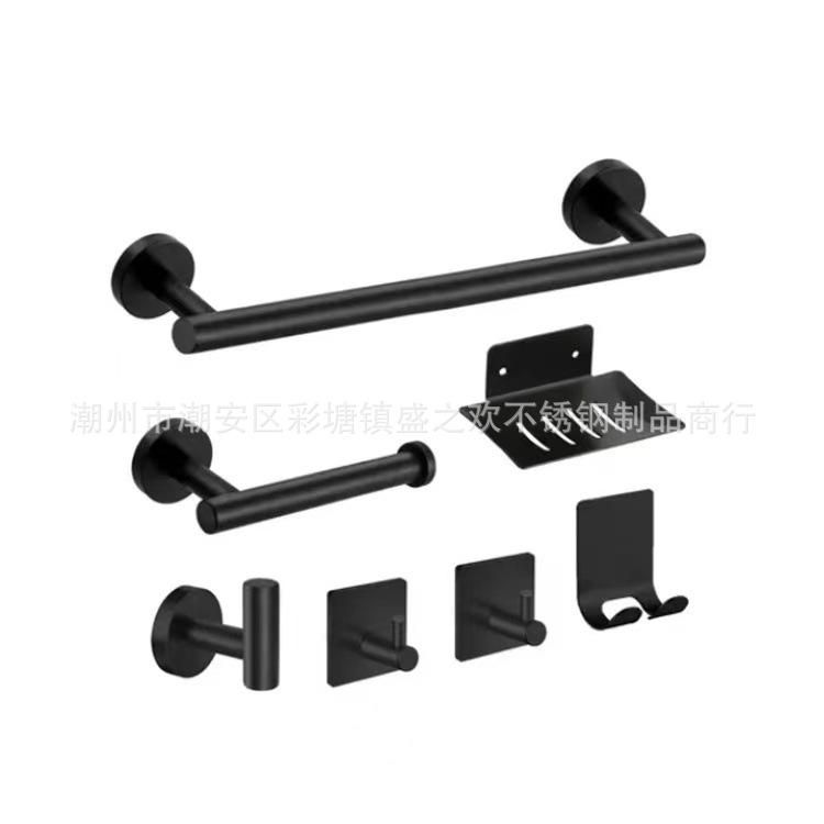 Buy Cross-border direct supply stainless steel towel rack bathroom rack paper towel rack clothes hook single pole wall hanging towel rack set Brushed 7-piece set in Nigeria