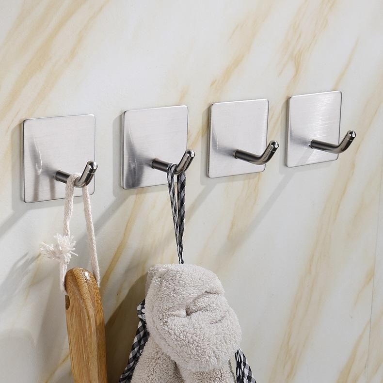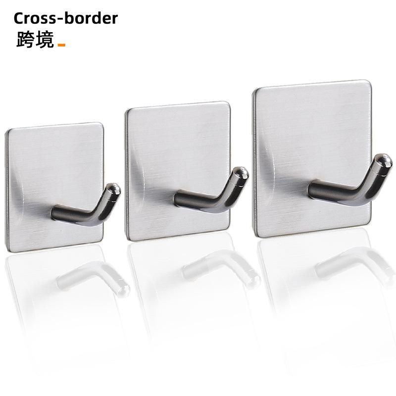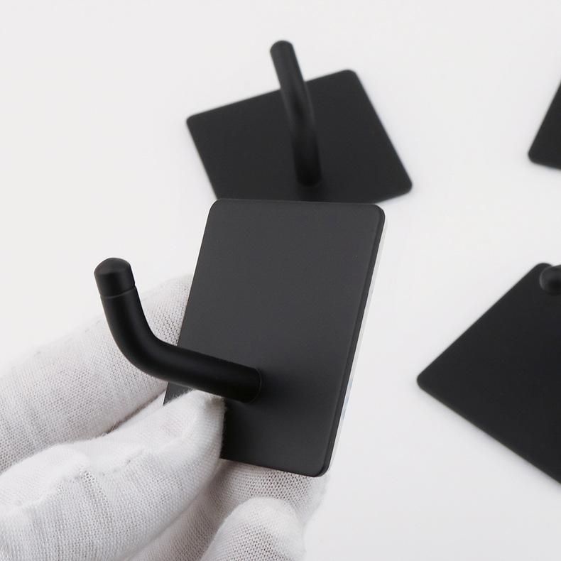 Buy Cross-border free punching door stainless steel hook hook kitchen sticky hook wall hanging bathroom metal cap clothes hook J type 003-1 black 4 into 1 box in Nigeria