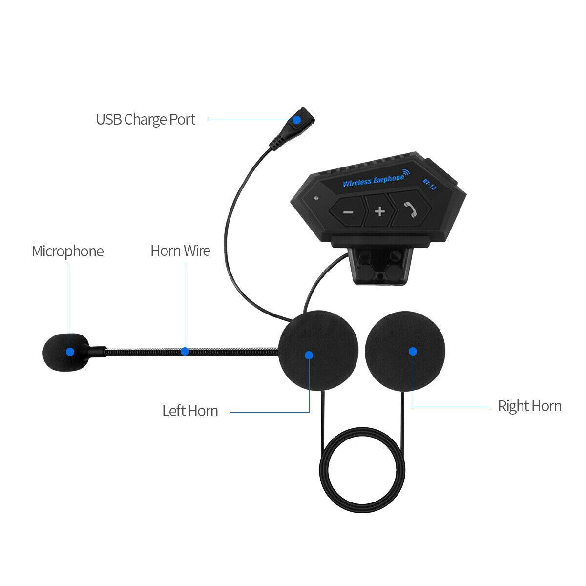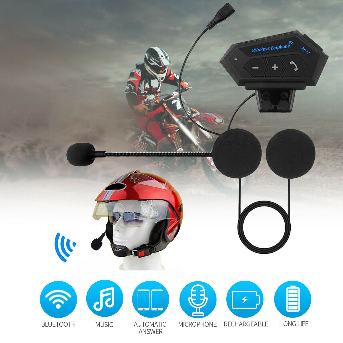 รายละเอียดสินค้า BT-12 Anti-interference Bluetooth Motorcycle Helmet Headset Wireless Headphone Speaker Hands-Free Intercom Motorbike Headphone