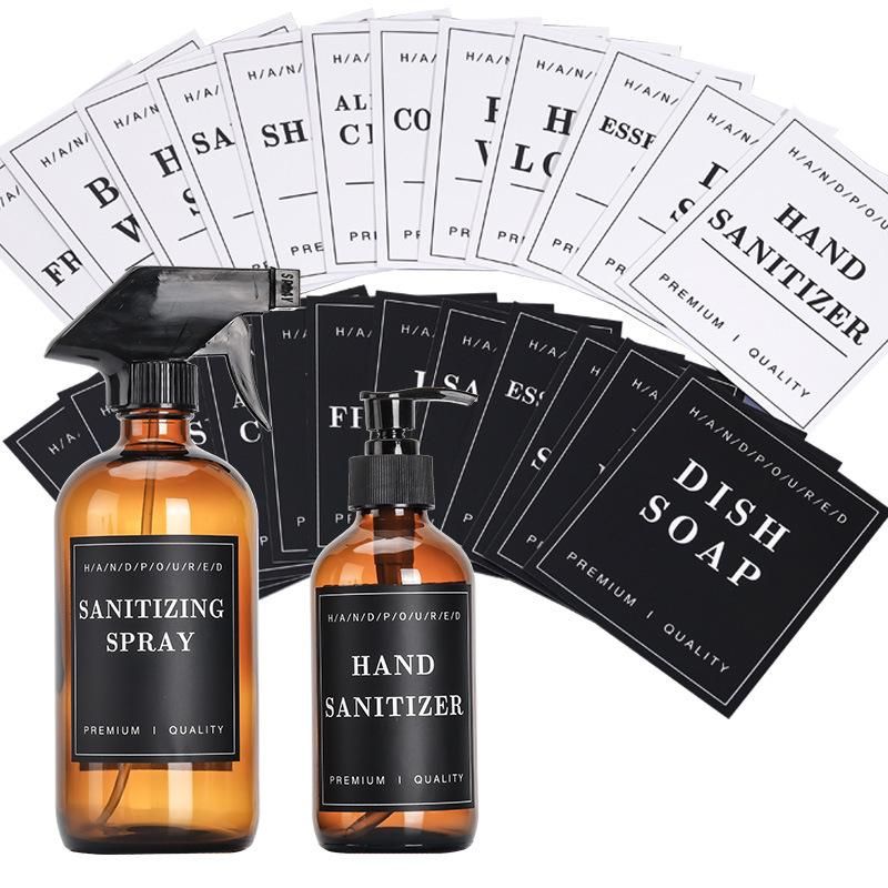 Buy Cross-border simple black bathroom jar storage label hand sanitizer glass bottle soap dispenser waterproof self-adhesive sticker Transparent shading 95x80mm-20 stickers/set in Nigeria