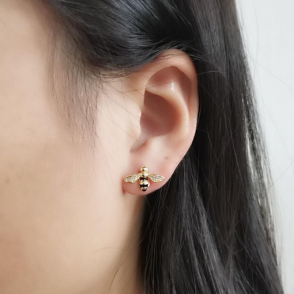 Buy Cross-Border Sold Jewelry S925 Silver Hand Painting Dripping Oil Little Bee Ear Studs Euro in Nigeria