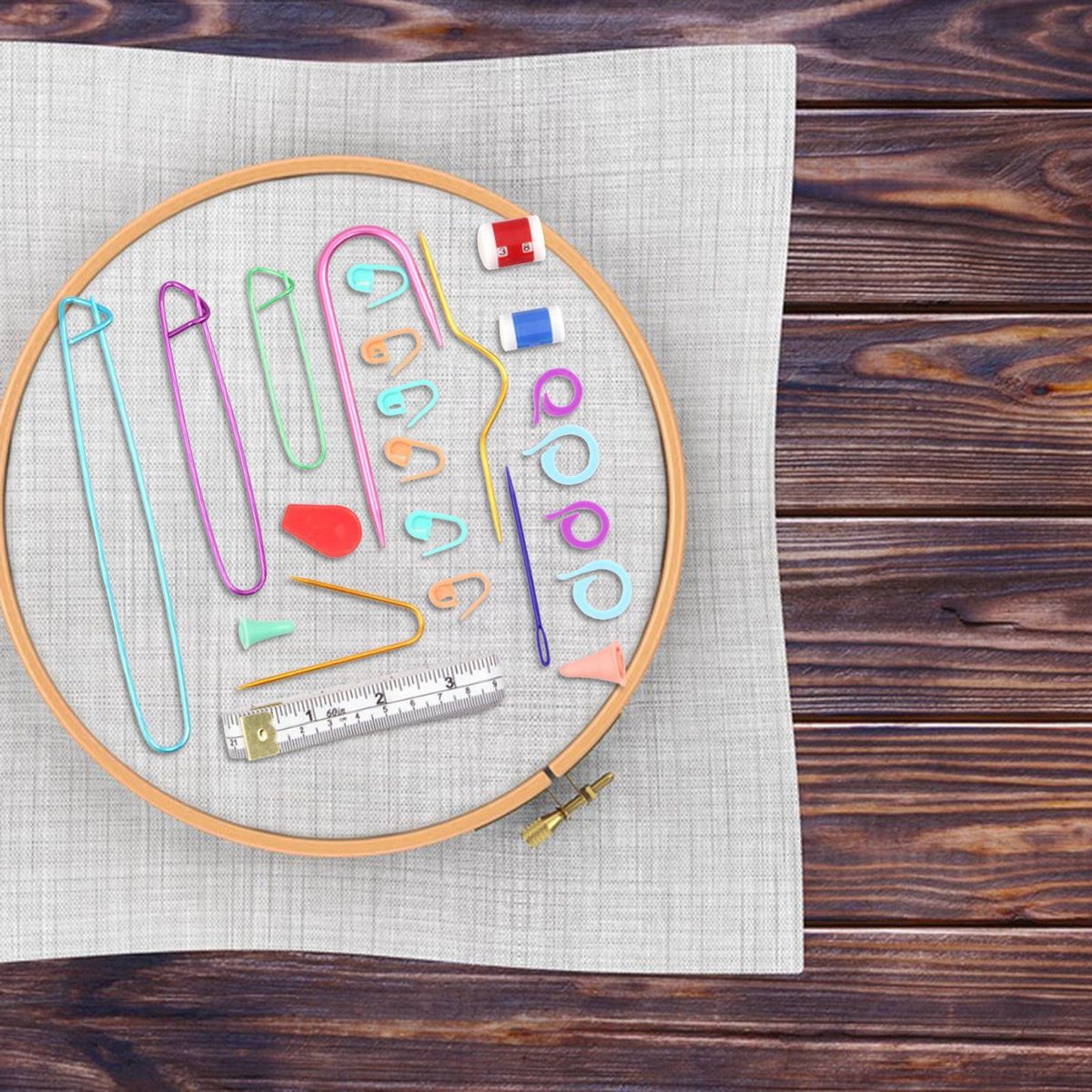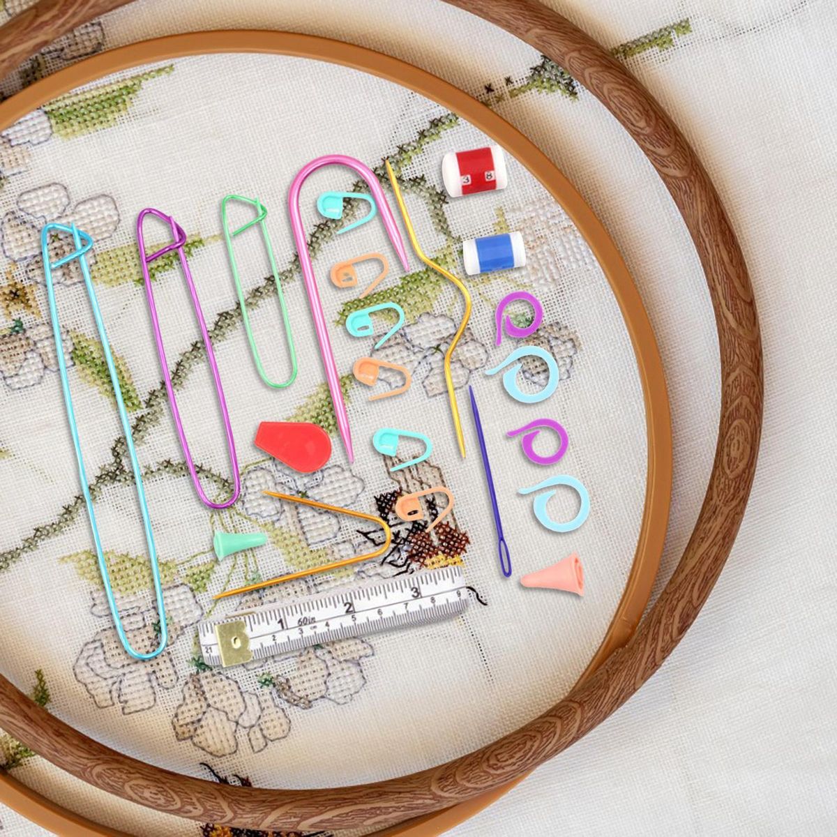 【PACKAGE INCLUDE】: 24x open counting diameter 20mm, 24x marking buckle length 21mmx10mm, 3x , 3x colored aluminum pins, 4x caps, 2x track markers, 1x sewing length 7cm, 1x tape measure length 150cm, 1x threader.【PREMIUM MATERIAL】: The cross stitch frame accessories are made of high quality, durable, flexible to use, and easy to pass through all kinds of pinholes.【CONVENIENT】: This set of accessories is easy and convenient for classifying and easy to store.【EASY TO USE】: Very convenient to use and help you make DIY sewing【GREAT GIFTS】: can be as good gifts to mom, grandmother, wife, or friends who loved sewing.