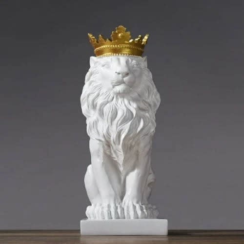 Abstract Gold Crown Lion Sculpture Resin Figurine Home Decor Gold 13x19x36cm/5.1x7.5x14.2inch.This is a beige coloured sitting lion figurine for the lovers of ornaments collectibles. The package content include 1 sitting lion figurines and should be kept away from fire.Features & detailsPerfect gift for those that love collectibleGreat design and craftmanshipPackage Contents: 1 Lion Figurines.Hand carved in a Fair Trade workshop in Bali, this beautiful Lion makes a unique gift or ornament.Carefully carved from sustainable material the Lion strikes a majestic pose showing the attractive grain of the material. This figure of an inspired Lion modelled standing on an oblong base with a paw resting on sphere. The figure is well modelled and decorated with enamels. Lions are the national symbol of England and were a popular subject in the late 18th and early 19th century. The burgeoning growth of Empire and strong national pride after many military and naval victories over the French gave extra significance to the symbolism. Strong masculine presence makes the figure ideal decoration for a library or office adding a touch of grandeur although it would take its place in various settings.