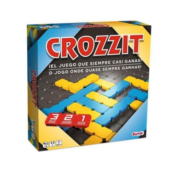 Each player has 30 small pieces, 1 long piece and 1 extralong piece.Pieces can be stacked creating bridges, but cannot cross over an opponent piece.The folks at Crozzit bill it as “the game you always almost win.” You may want to read that line again. The goal of this two-person game is pretty simple: Player 1 needs to lay out his her or her blue tiles to connect the two blue sides of the board. Player 2 does the same, using yellow tiles to connect the yellow sides. Oh, did we say simple? Ha! There are only three rules that are extremely easy to follow, and since there are only two players, your odds of winning are 50/50. But to succeed, you'll need to use logic, reasoning, and strategic planning. Crozzit comes with a board, 64 tiles, and instructions, and takes about 20 minutes to play—but it's hard to stop after one game—you'll soon find yourself playing best of 3, then 5, then 7, and so on.Player 1 needs to make a blue line connecting the 2 blue sides using the blue tiles. Player 2 has to connect the yellow sides using the yellow tiles. Only 1 player can succeed! Similar to Hex, the players race to connect two opposite sides of the board. Each player has 30 small pieces, 1 long piece and 1 extralong piece.Pieces can be stacked creating bridges, but cannot cross over an opponent piece.The folks at Crozzit bill it as “the game you always almost win.” You may want to read that line again. The goal of this two-person game is pretty simple: Player 1 needs to lay out his her or her blue tiles to connect the two blue sides of the board. Player 2 does the same, using yellow tiles to connect the yellow sides.