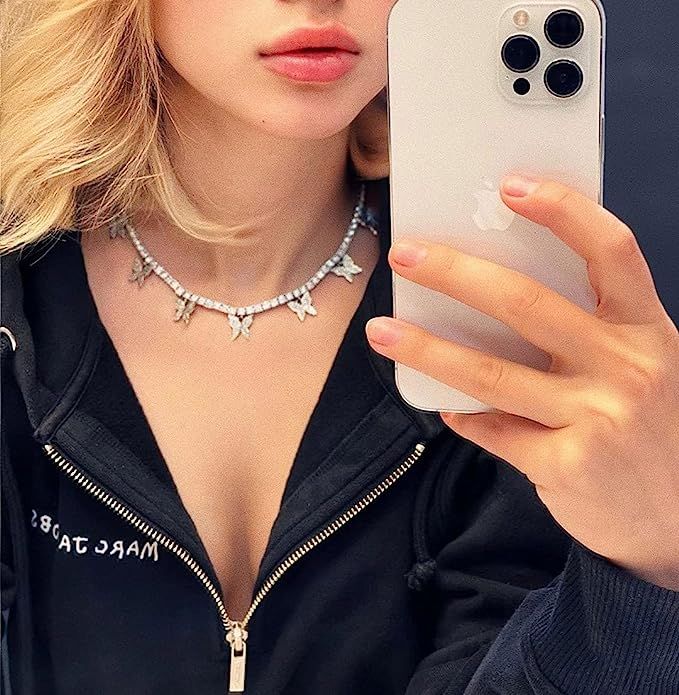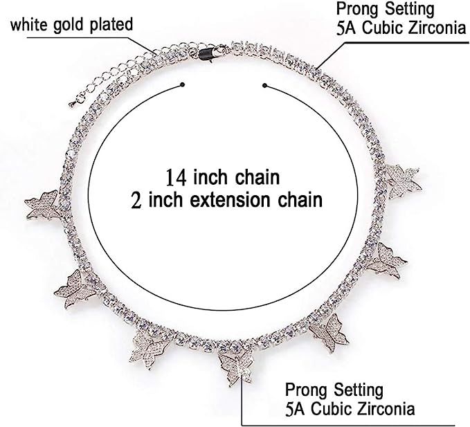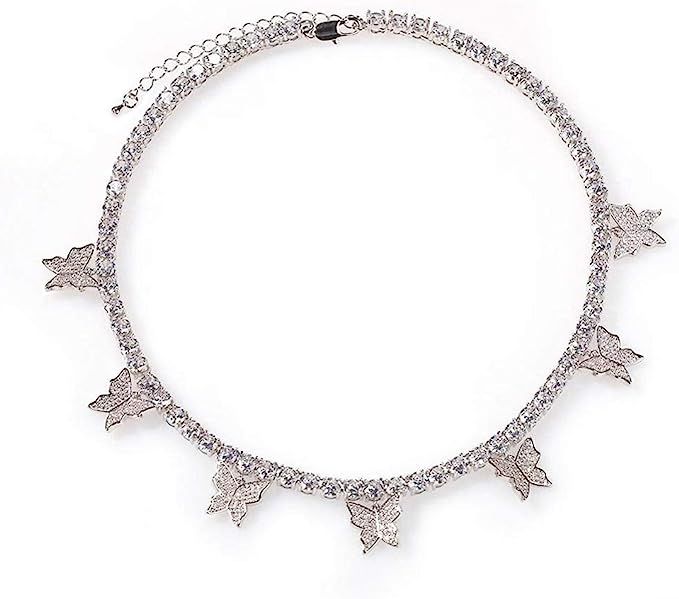 Crystal Butterfly Choker Necklace Rhinestone Butterfly Pendant Necklaces Chain Sparkly Party Neck Jewelry for Women