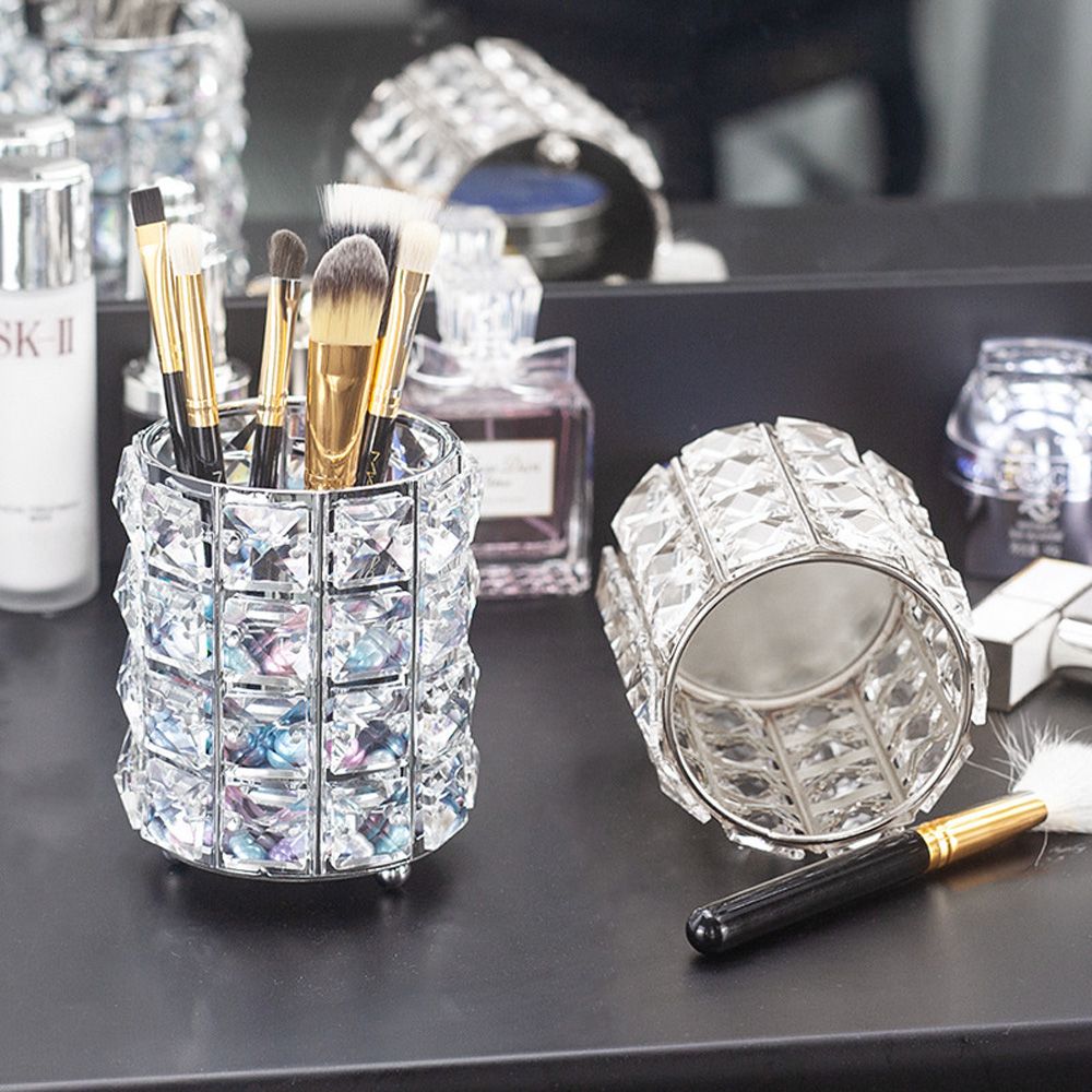 Women Crystal Cosmetic Brush Organizer Makeup Tool Holder-Golden