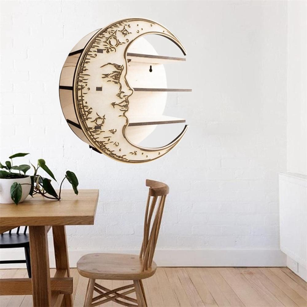 Moon Design: Moon room decoration provides a warm and rustic atmosphere for any application space. The moon-shaped hanging floating shelf is suitable for any rustic, or natural decoration. Simple , such as a display stand suitable for small potted plants, Crystal , essential oils, etc.