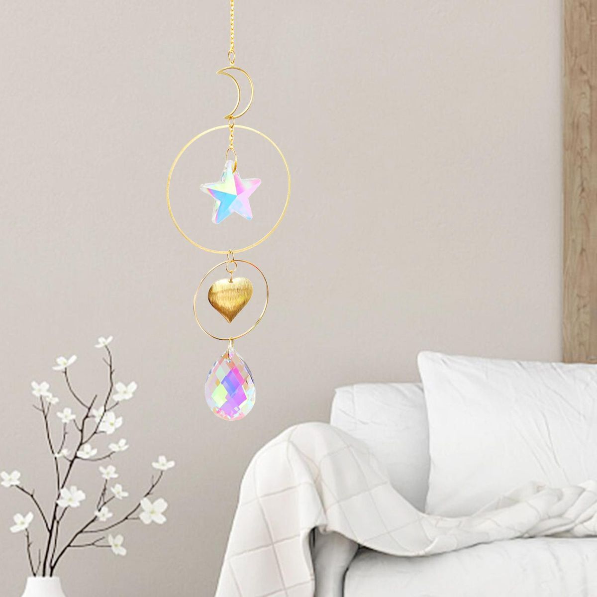 - shape with drop crystal balls are suitable for various decorative occasions, such projects, baby room, , curtains, windows, walls, shelves, cabinets, car, porch, balcony, front door and more