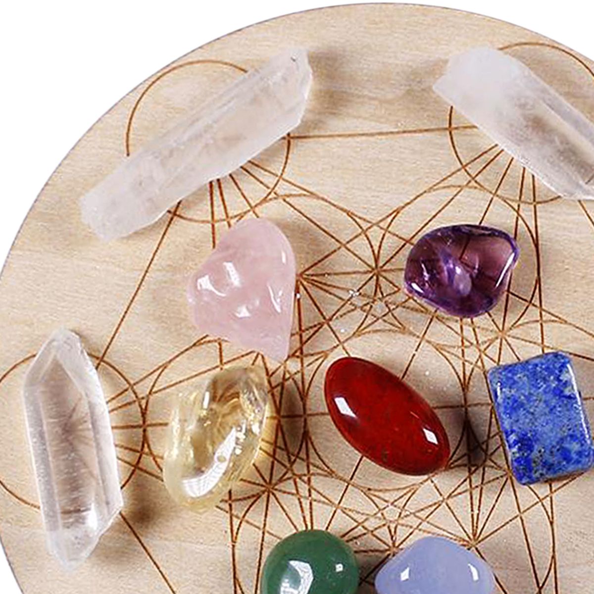 Unique Natural Mixed Crystal + Seven Star Array Wood Plate