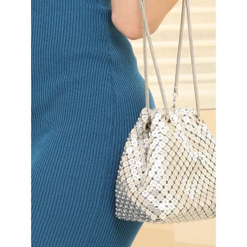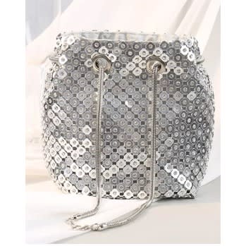 Buy Crystal Sequins Bucket Shaped Purse - Silver in Nigeria