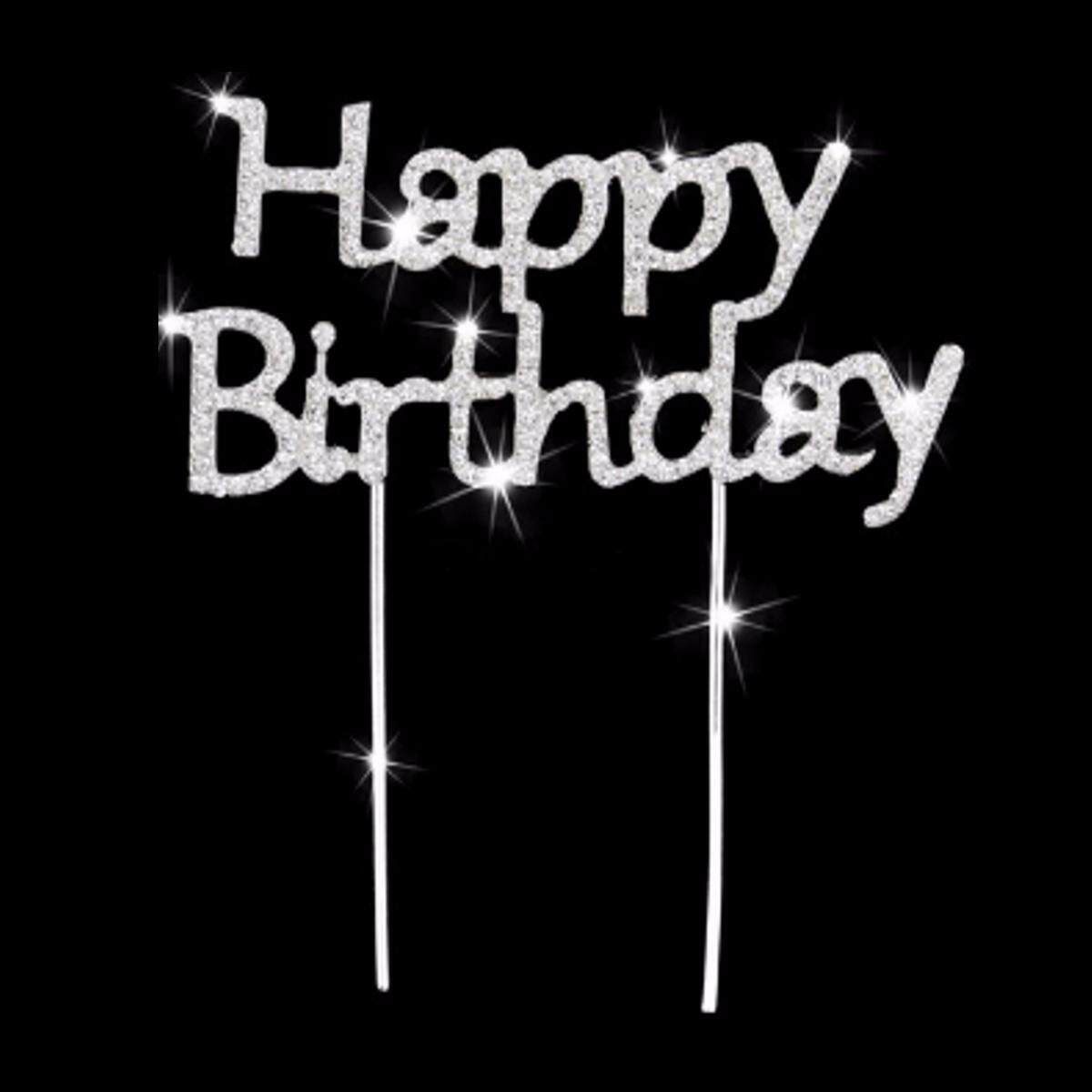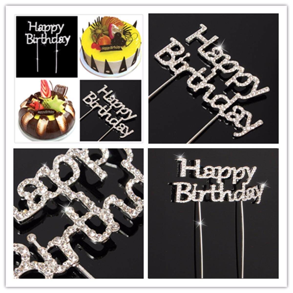 - Stunning crystal rhinestone "Happy Birthday" cake topper.