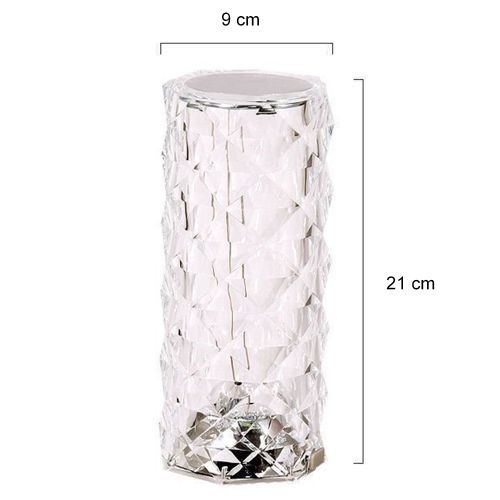 Design: Modern table lamp design with pillar shape, diamond-shaped surface, silver top, the refracted lights are multi-layered, beautiful and romantic.
