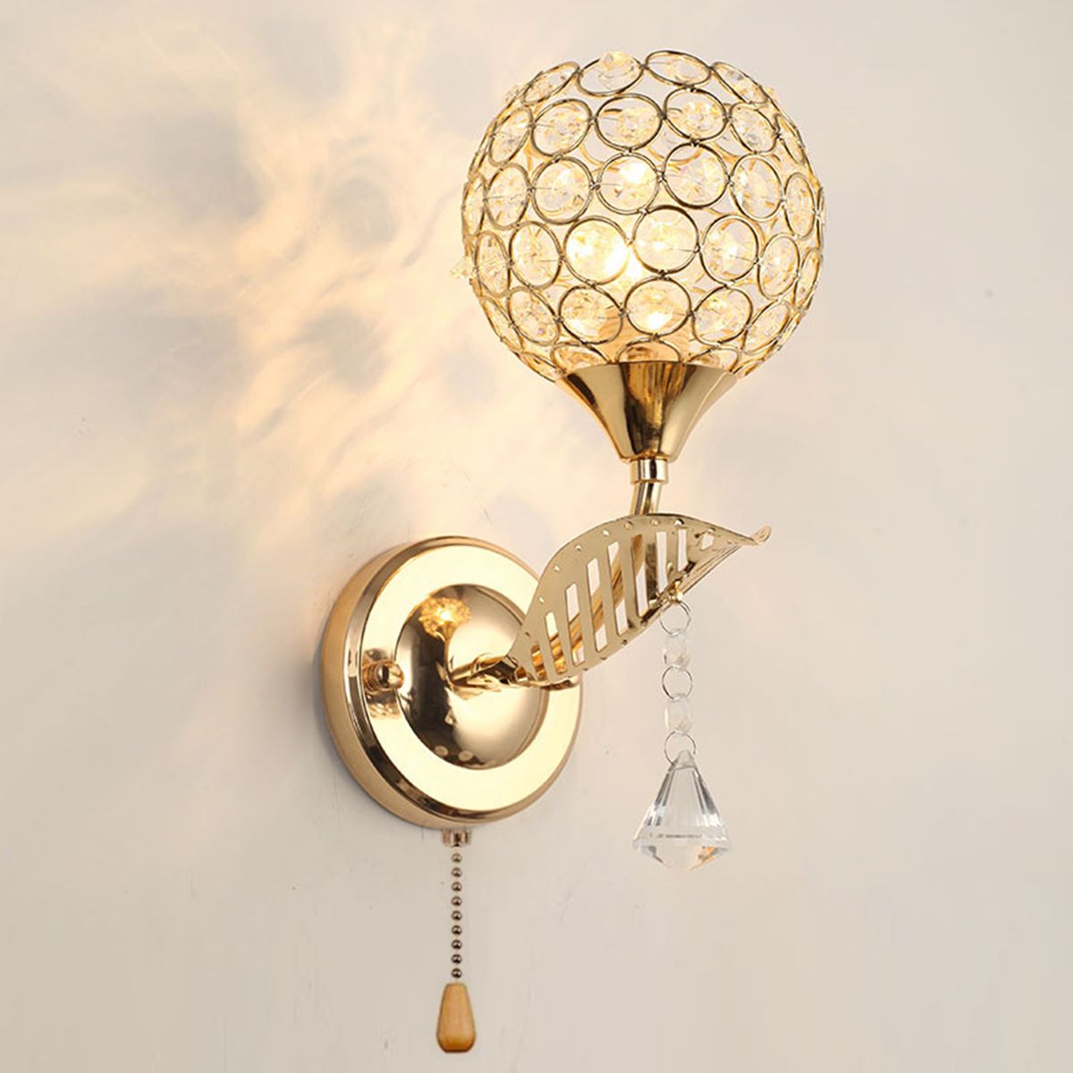 The lampshade is made of metal and crystals, with a big crystal hanging for extra eye catching, suitable for modern home decor.