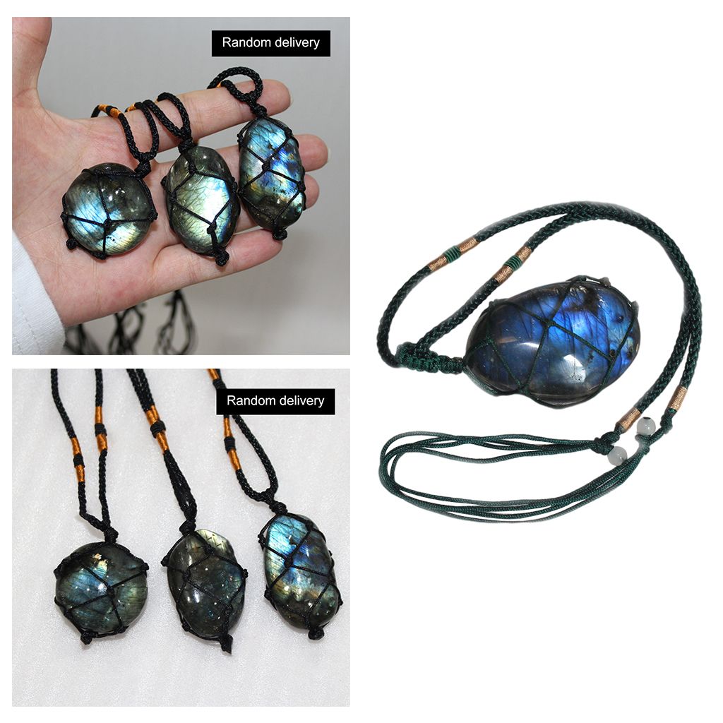 This beautiful accessories crystal stone necklace is wrapped with rope as of pendant.
