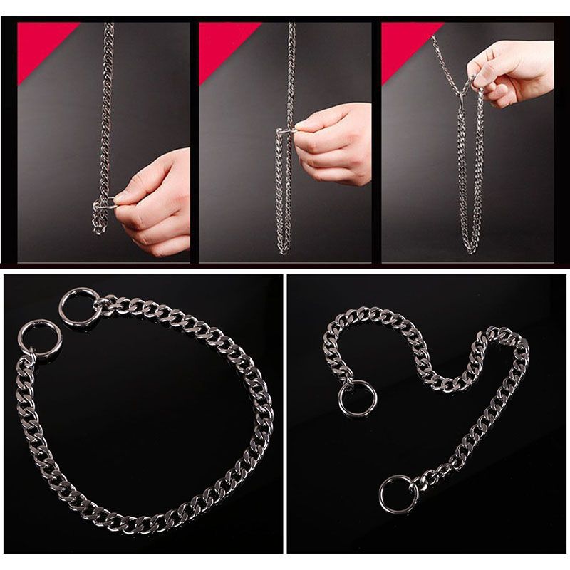 Collars are made from a variety of materials, the most common being leather or nylon webbing. Less common materials may include polyester, hemp, metal, or "tarpaulin" (vinyl woven with cotton). The collar can be decorated in various ways with various materials. Basic collars for everyday wear are: a button collar, also called a flat collar, with a clasp similar to a belt buckle, or a quick release clasp, both of which fit loosely around the dog's neck. The identification is usually attached to such a collar; it also comes with a loop to which a leash can be attached. This is the most standard collar for dogs. The flat collar should fit snugly around the dog's neck. It shouldn't be so tight that the dog will die, and it shouldn't be so loose that they can slip out of it. In general, you should be able to fit a two-finger nylon quick-release snap collar under the collar with identification and medical labels. Safety Stretch Collars contain a stretchy panel in a sturdy nylon collar to escape potential strangulation hazards such as branches, fences, gates and other dogs. Unlike splits, the stretch collar acts like a traditional collar when clipped with a belt. Special purpose collars and accessories Reflective collars are usually made of nylon webbing with reflective tape to ensure dogs can be seen through approaching vehicles at night