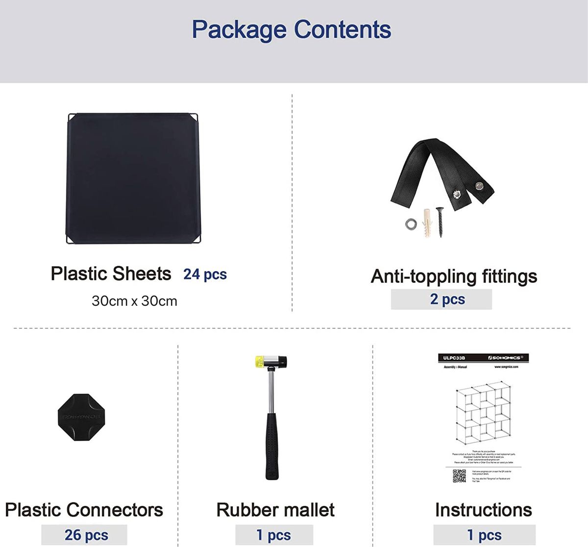 Store more possessions: these 30 x 30 x 30cm cubes are made of PP plastic sheets with sturdy metal wire frame and abs plastic connectors. Each cube holds up to 4.5KG. This is a very stable structure that won't tip or fall over. Super easy to assemble yourself