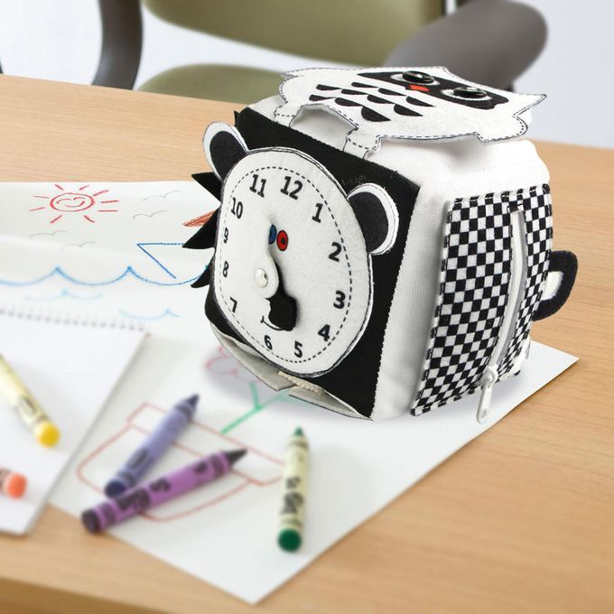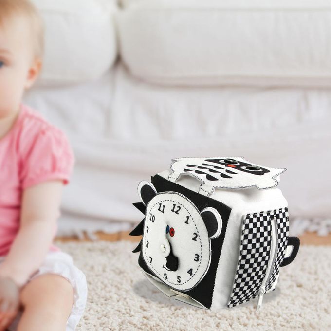 The Activity Learning Cubic Toy is uniquely designed with black and white colors to appeal to any child's early fascination with buckles,zippers, latches and buttons.