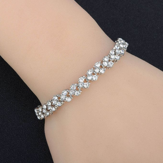 Vividly Sparkling: Brilliant white crystals created and cut with a detailed clasp and chain are combined to bring a touch of glamour to any outfit