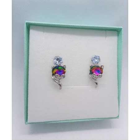 Buy Cubic Zirconia Rose Flower Dangle & Drop Earrings - Rainbow in Nigeria